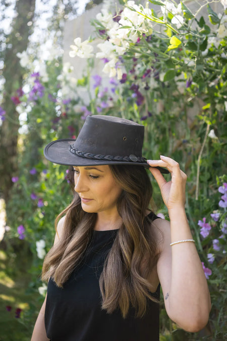 Made in Australia, marks and scratches on our leather hats are considered a natural feature as they are made with naturally scarred leather from free-roaming cattle or wild kangaroos.