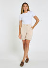 A quick fire way to summer sophistication is our Maryland linen shorts. Ever so soft with a garment wash finish, the have an elasticated back which gives discreet comfort without compromising the tailored style. Match with a loose linen shirt or a classic t-shirt for a paired back outfit or complete a tailored look with a Dubarry Avonlea jacket. Garden parties, summer office days or holiday evenings will the perfect setting for these classy shorts however you chose to style them.